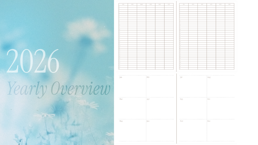✨ Yearly overview has 2 spread options (as shown in the 2nd cover image)